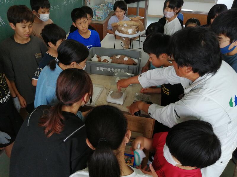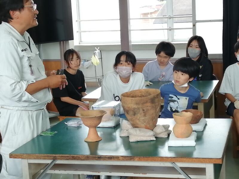 5月23日(水)、6年生が発掘体験活動を行いました。計画では校区内の土器の発掘現場に行って実際の発掘の様子を見せていただく予定でしたが、天候が不安定だったため、急遽、校内での活動に変更になりました。写真の土器は実際に発掘されたものです。 担当の方から、実際に土器を発掘する様子を実物の土器を示しながら説明していただいたり、地下1~3mのところから発掘されることを地層の画像を織り交ぜながら教えていただいたりしました。興味深そうに発掘された土器を見る姿が印象的でした。子どもたちが特に熱心に取り組んでいたのが埴輪づくりです。個性ある埴輪がたくさん出来上がりました。 社会科で縄文時代、弥生時代の学習をするときにきっと今日の学習を思い出すことでしょう。