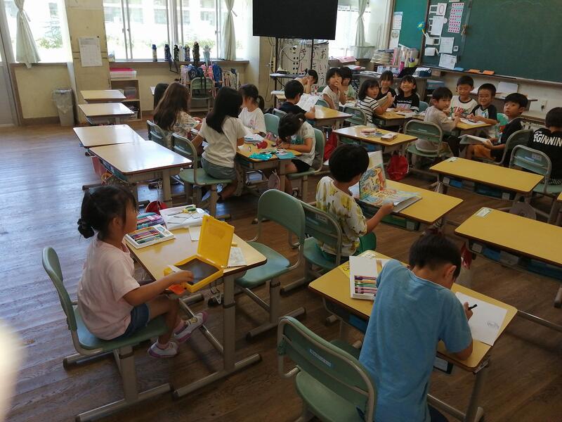 今日の串間市の最高気温は猛暑日一歩手前の34度が予想されています。 日なたに出るとあっという間に汗が噴き出してきます。本日は熱中症警戒アラートが発表されています。 子どもたちが楽しみにしている昼休みですが、今日は外での遊びができません。いつもは昼休みには運動場に子どもたちの元気な声が響き渡りますが、今日は運動場に子どもの姿を見ることはできません。 子どもたちは冷房の効いた教室で、お絵かき、読書、かるた、トランプ、粘土遊びなどそれぞれ自分がやりたいことに取り組んでいました。 今週は週末にかけて35度に迫る日が続きそうです。