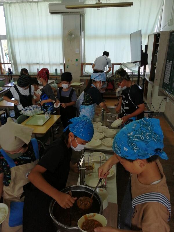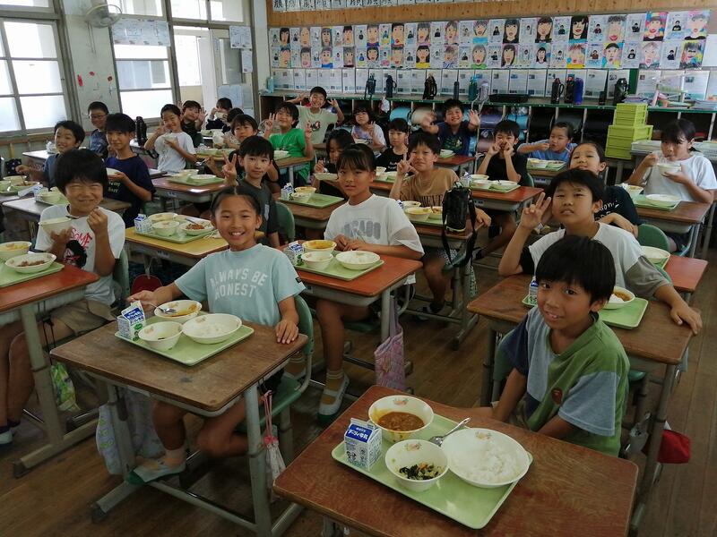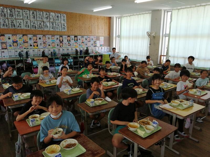 7月19日(金)、今日は1学期最後の日です。いつもなら、体育館で行われる終業式ですが、連日の暑さ、県内での新型コロナウイルス感染症の拡大を考慮して、各学級をオンラインでつないで終業式を行いました。 そして、今日は1学期最後の給食になりました。メニューは夏野菜カレー、温野菜、麦御飯、牛乳でした。子どもたちが大好きなカレーでしたので、余っていたカレーや麦御飯もお代わりをする子どもたちであっという間になくなりました。おいしそうに食べる子どもたちの姿が印象的でした。 いよいよ明日から8月25日(日)まで、37日間の長い夏休みに入ります。