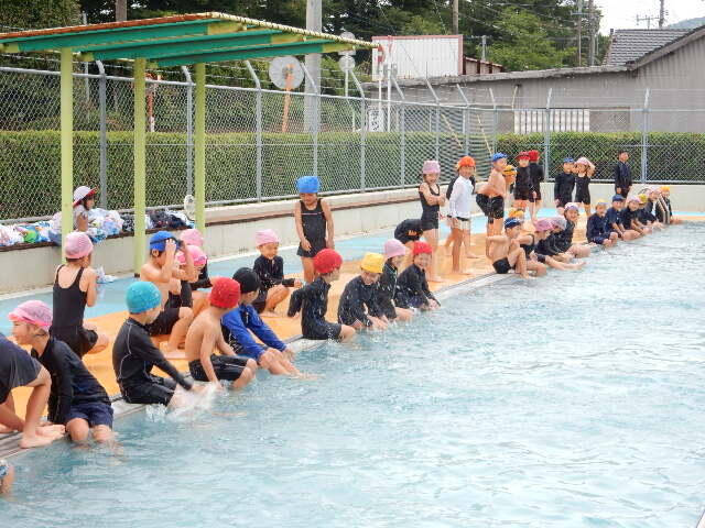 今年の水泳指導は大プール、小プールともに、2クラスずつで使うことにしていますが、写真の時間は5年生と1年生のそれぞれ2クラスが今年初めての水泳。はじめはやや緊張気味の子ども達もシャワーを浴びると気持ちも一気にアップ!皆さん、冷たい水の感じはどうでしたか?