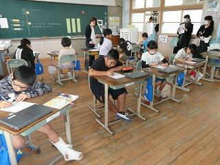 公開した授業は、国語科の説明文の授業で、複式指導の様子を見ていただきました。