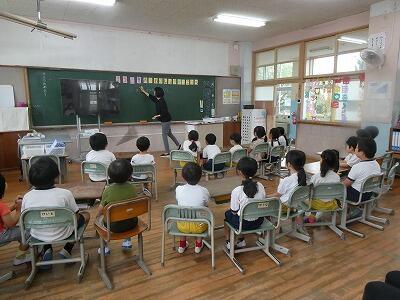 5月31日に、りんぽかん保育園、むつみ保育園の園児が来校しました。1・2年生と一緒に授業を受けました。