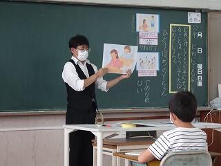 十分に換気をし、児童同士の間隔をあけ、マスクを着用して実施しました。
