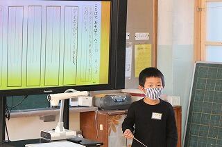 1年生は、楽しみにしていた漢字の勉強や持久走を頑張ったという内容でした。はきはきと発表できました。