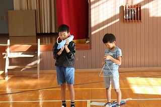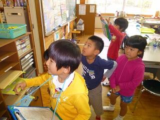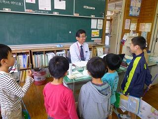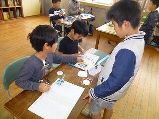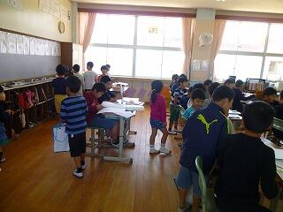 2年生と1年生が4つのグループに分かれて、学校探検ツアーを行いました。職員室では、教頭先生の仕事を質問したり、特別教室では、めずらしい道具に興味を持ったりしながら探検していました。2年生は、教室の説明をしたり、1年生のお世話をしたりと、ちょっぴりお兄さん、お姉さんになったようです。また、3,4,5,6年生が一生懸命勉強している姿を見て、「すごい!」と一言。1,2年生も3,4,5,6年生のように、勉強をがんばろうと思ったようです。