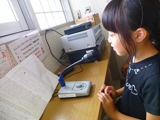 有明小学校では、児童の表現力と音読の向上を目指して、給食の時間に週に1回、作文を発表するコーナー「作文GO!」があります。今週は、2年生が担当しました。有明小学校を紹介する作文を発表しました。いつもの音読と違って、マイクの前に向かうとドキドキしたそうですが、二人ともゆっくり、ていねいに音読することができました。
