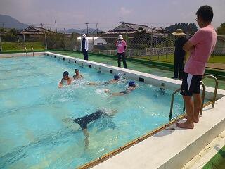 7月27日の串間市水泳記録会に向けて、3日間の強化練習が行われました。出場する児童は、自分が出る種目を中心に練習をしました。また、出場しない児童も、少しでも長く泳げるよう、練習に励んでいました。