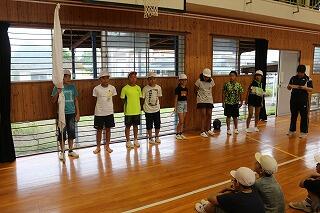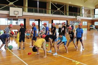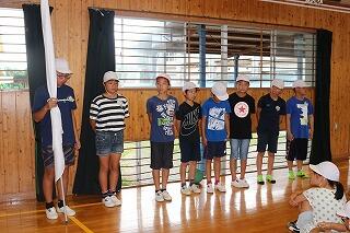 7月31日(火)授業日の朝の時間に、運動会の結団式がありました。A団・B団のリーダーが障害走リレーを行い、先についた方が、団の色が入った箱を先に選ぶことができます。その結果、A団は赤団に、B団は白団に決まりました。