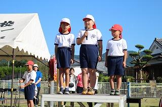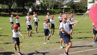 9月30日に予定していた運動会でしたが、台風のため、1日に延期。風が強かったけど、晴天の下、無事運動会を開催することができました。