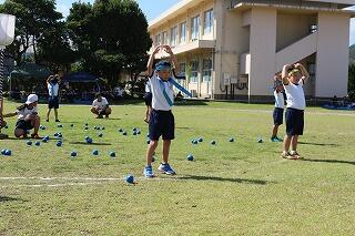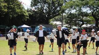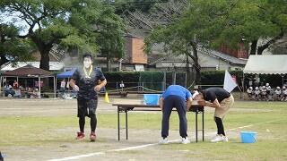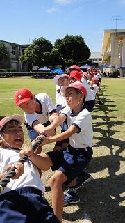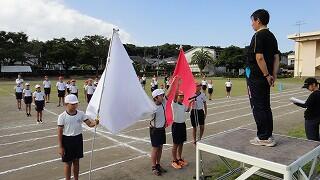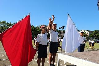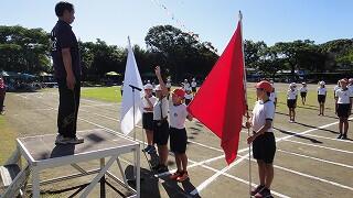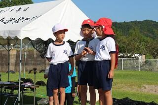 当日は、前日に準備ができなかったので、早朝より保護者のみなさんの協力のもと、テントをはったり、看板を取り付けたりと準備をしました。子ども達も登校すると、運動場に出て台風で飛ばされた枝や落ち葉を拾い集めていました。お陰で、時間通りの開始となりました。今年度は、競技の部優勝白団、応援の部優勝赤団で幕を閉じましたが、どちらの団も全力で競技に取り組んだり応援をしたりとがんばっていました。また、4~6年生は、係の仕事も立派にはげんでいました。