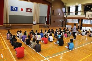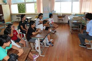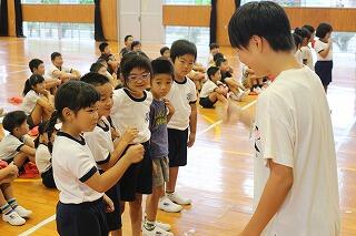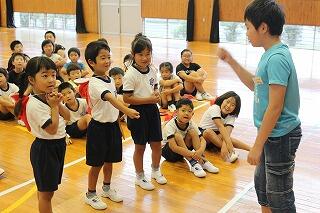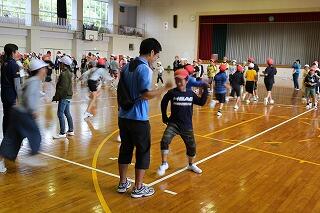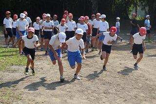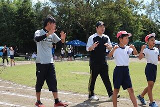10月4日(金)に、金谷小との交流学習を本校で行いました。同時に5・6年生は、乗り入れ授業として中学校の先生においでいただき、陸上運動の学習に取り組みました。