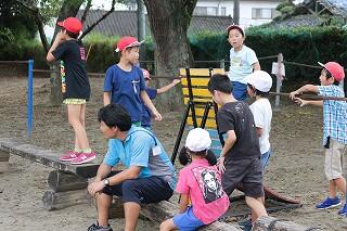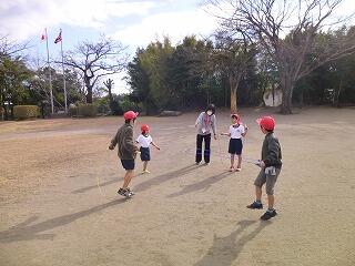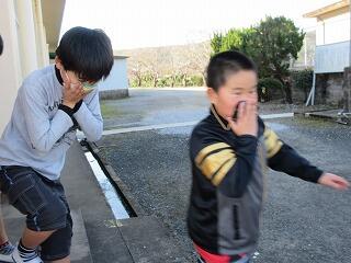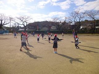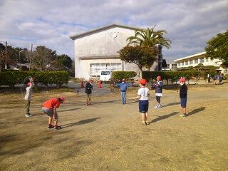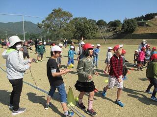 いつもは閑散としている昼休みに、運動場いっぱいに広がって一緒に遊ぶ金谷小・有明小の子どもたちの姿を見て、楽しみにしていたわけがよく分かりました。