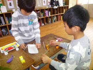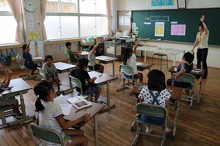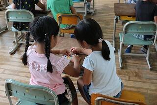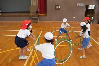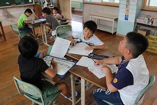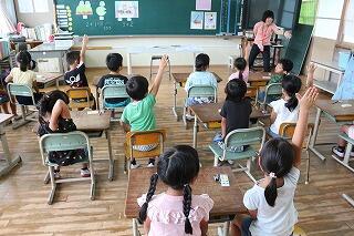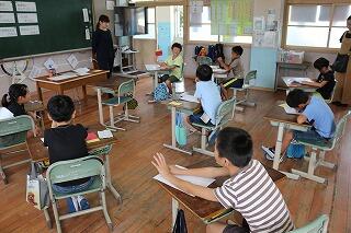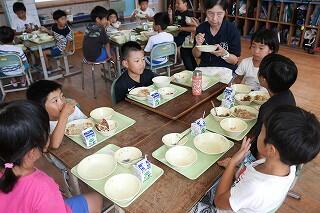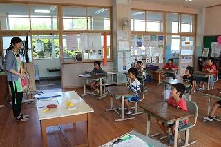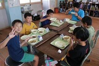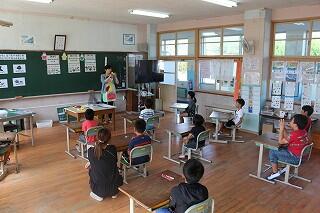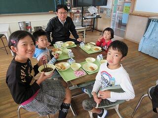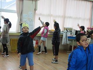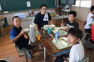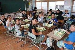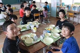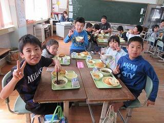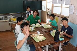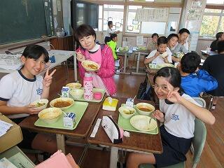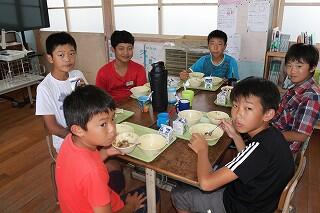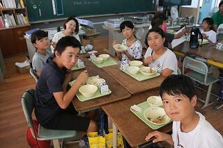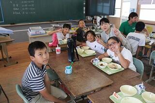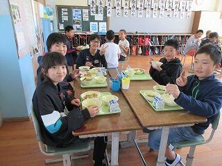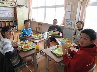 1・2年生は体育と図工、3・4年生は学級活動・道徳と体育、5・6年生は体育で交流学習をし、全学年が給食と昼休みを一緒に楽しみました。