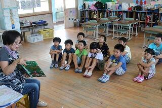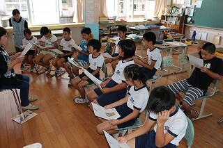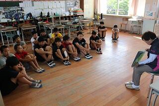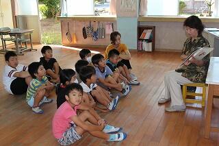 今日10月11日(金)は、読み聞かせの日でした。今日も5人のボランティアの方々がおいでになりこどもたちにそれぞれが準備してこられた本の読み聞かせをしてくださいました。