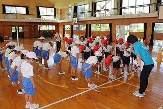 これまでの練習を通して、「力を出し切る」こと、「がんばる姿が素晴らしい」ことを子どもたちに伝え、入場行進や開会式・閉会式、全校ダンスの入場などの確認を行いました。