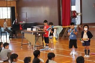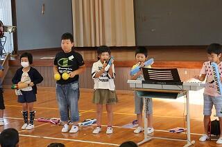 運動会のダンスで見せてくれたリズム感の良さを生かし、みんなで息の合った歌と合奏を披露してくれました。