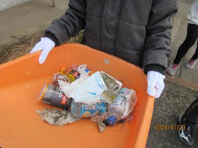 1月23日(火)の午後、地域貢献を目的とし、5・6年生がJR福島今町駅周辺の清掃に出かけました。寒い中でしたが、吸い殻や空き缶、ペットボトルなどをたくさんのゴミを拾うことができました。昨年度は6年生だけがこの活動を行いましたが、今回は5年生も加わり、お互いに協力して駅周辺をきれいにすることができました。がんばりました! 今後もいろいろな活動を通して、地域への貢献意識を育てていきたいです。
