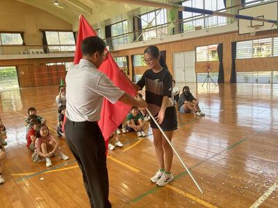 校長先生の話では、能登地震について、大谷翔平選手からいただいたグローブが届いたこと等、話がありました。大谷翔平選手からいただいたグローブは、野球をしている児童が代表で手にはめてみて、もらったうれしさや野球をする仲間が増えてほしいことを感想として話していました。