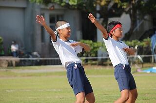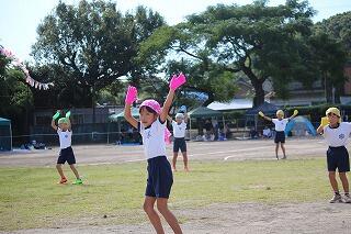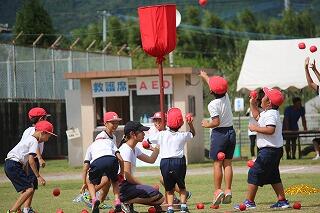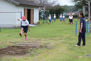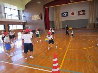 まず、1,2年生合同で体育をしました。自己紹介の後、折り返しリレー、ドッチボールをしました。初めは、緊張していた子供たちでしたが、すぐに慣れて、楽しく運動することができました。
