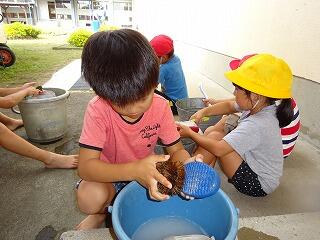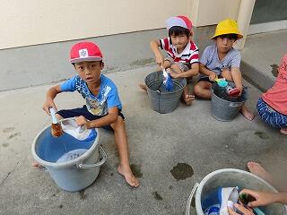 10月13日にシューズを洗いました。家からブラシを持ってきて、ゴシゴシ洗ったらきれいになりました。これから、自分で洗いたいという意欲をもった子どもたちでした。きれいになったシューズを見てうれしそうでした。