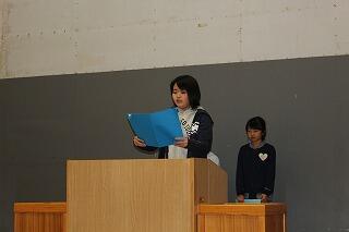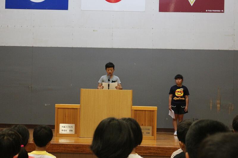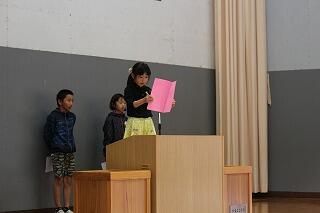 児童作文発表では、1・3・5年生の代表児童が1年間の成長、反省を堂々と述べました。