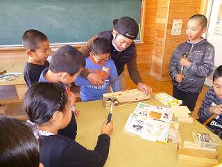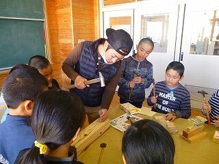 途中、手を打ってしまったり、板がわれたりとアクシデントもありましたが、どの子も楽しく作品作りができたようです。これも、黒木さんのおかげです。ありがとうございました。