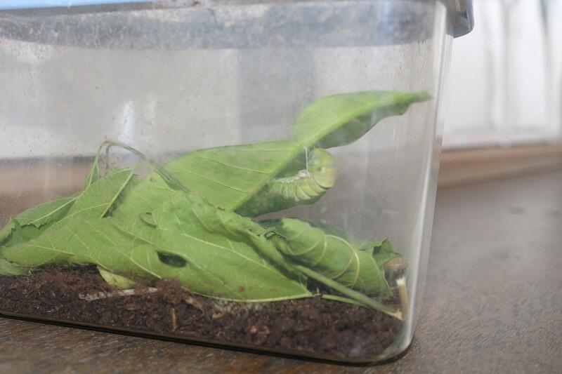 3年生理科の学習で、モンシロチョウの育ち方を学習ました。先日、3年生と6年生の男の子が「先生、アゲハチョウの幼虫とさなぎを見つけました」と持ってきてくれました。