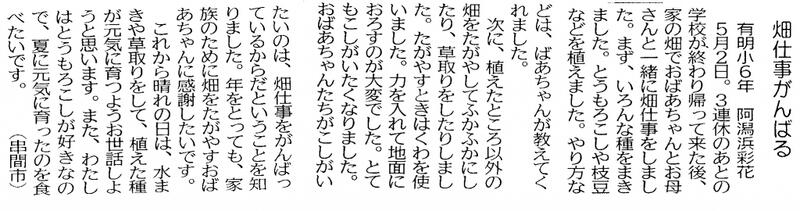 宮日新聞に川畑妃音さんの作文が掲載されました。