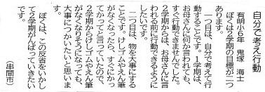 9月29日に6年鬼塚海士くんの作文が宮日新聞に掲載されました。