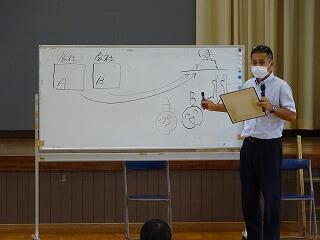 7月11日(月)、南九州大学人間発達学部3年生の学生3名が本校を訪問しました。3名は教師を目指しており、今回は、ゼミの授業の一環での来校でした。3校時は着衣泳の授業を参観、4校時は準備してきたプレゼンで5年生の子どもたちに、自己紹介や大学生活の様子などを教えてくれました。5年生から質問を受けたり、昼休みは一緒に遊んだりしながら短い時間を過ごしていました。