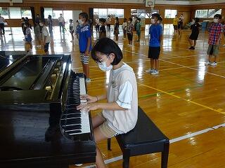 9月8日(木)の2校時、運動会に向けた1回目の全校体育がありました。今回は、全校ダンス(新串間音頭)、ラジオ体操、開会式について練習が行われました。子どもたちにとっては久しぶりの新串間音頭でしたが、踊りだすとすぐ思い出して踊れていました。また、取り組む態度もよかったです。