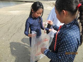 7月8日(金)の午前中、有明小ならではの活動である「ありあけん子海浜活動」を実施しました。この活動は、「海に親しむ」教育活動を校区内の高松海水浴場で行うことで、地域の良さに気付き、地域への愛着感を深める活動です。宮崎県ライフセービング協会の藤田様を始め、海の子ども会の方々、総勢11名の方々に指導していただきました。子どもたちは、ライフセービング体験、SUP(スタンドアップパドルボード)体験、海岸の清掃活動の3つの活動を3班に分かれて体験しました。天候にも恵まれて、楽しい体験ができました。ご指導いただいた指導者の方々、シャワーをお貸しいただいた「浜っ子母ちゃん」の清水様、皆さんありがとうございました。