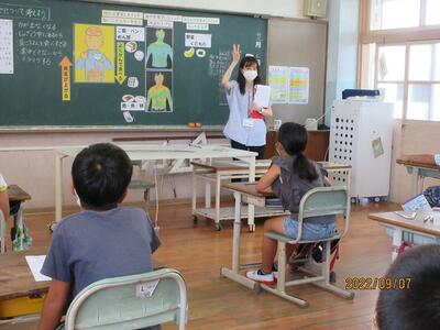 串間中学校の栄養教諭である今川先生が、9月7日(水)、4年生の授業に来てくださいました。行っていただいた授業は「朝食の大切さ」についてです。朝ごはんを食べることで得られる3つの大切な働きについて教えていただきました。