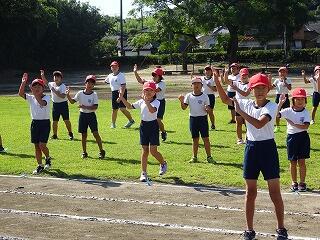 9月8日(木)の2校時、運動会に向けた1回目の全校体育がありました。今回は、全校ダンス(新串間音頭)、ラジオ体操、開会式について練習が行われました。子どもたちにとっては久しぶりの新串間音頭でしたが、踊りだすとすぐ思い出して踊れていました。また、取り組む態度もよかったです。