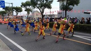 11月3日(文化の日)は、恒例の市民パレードに3・4年生が参加しました。暑いくらいの好天に恵まれ、長い待ち時間も我慢して、子どもたちは立派に花笠音頭とWe never give upを踊りました。