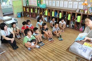 今日10月11日(金)は、読み聞かせの日でした。今日も5人のボランティアの方々がおいでになりこどもたちにそれぞれが準備してこられた本の読み聞かせをしてくださいました。