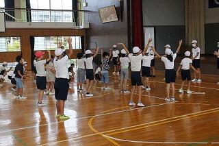主に開会式や閉会式の練習を行い、子どもたちは前回習ったとおりに「注目」や「礼」ができるように、さらに練習に励みました。