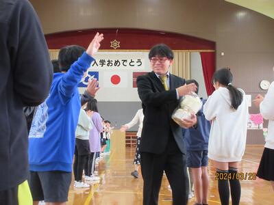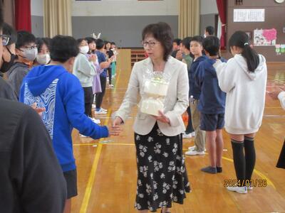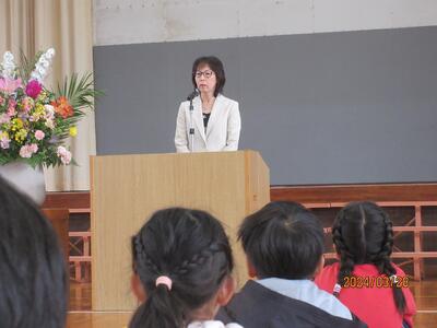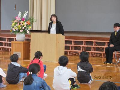 3月28日(木)、離任式が行われました。今年度は計6名の先生方が転出・退職します。子どもたちのために頑張りぬいた先生たちが、本校を離れることに寂しい気持ちは尽きませんが、4月からの新しい場所で、健康で、そして元気に活躍されることを願っています。
