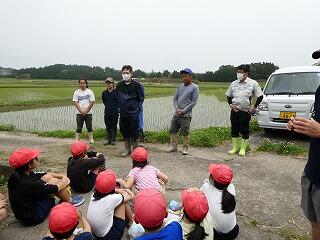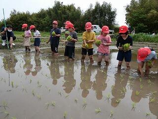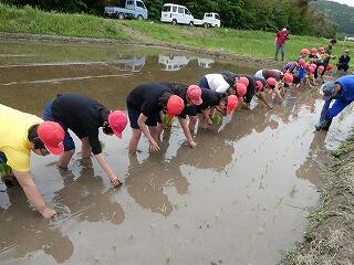 4月16日(火)前日の大雨で心配しましたが、暑いくらいの良い天気の中3年生~6年生の児童が田植えを行いました。JA青年部の方に教えてもらいながら行いました。みんなで横一列になり進めていきましたが、途中で泥だらけになる児童もいました。2年生も応援に駆けつけてくれました。秋には、もち米の収穫をするのが楽しみです。