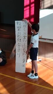一人ずつ一首を選び、大きな模造紙に書いて、読み上げました。