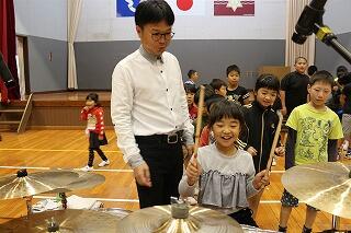 どの活動にも地域の方、保護者のみなさんがたくさん参加してくださり、一緒に竹馬やコマ回しをしたり、もちの丸め方を教えたりしてくださいました。お昼ご飯には、つきたてのおもちを全校みんなでいただきました。午後からのワタナベイベェズのコンサートでは、校長先生がギター演奏に参加。6年生も、ダンシングヒーローをノリノリで踊りました。子ども達が喜んでくれるように、アニメの曲を演奏したり、楽器とふれあう時間を設けたりと、大サービスのコンサートでした。