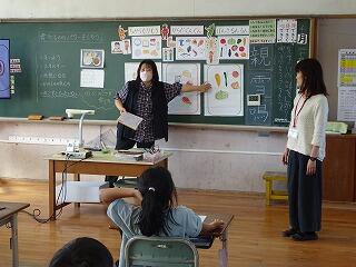 10月24日(火)の2校時に2年生の学活の授業が行われました。この授業は栄養を知る授業で、栄養教諭の村橋先生に入っていただき、「食べ物のパワーを知ろう」というめあてのもと、食べ物の働きについて詳しく説明してもらいました。子どもたちは、食べ物は3つのグループに分けられることを知り、どんな食材がどんなグループに分けられるのか考えていきました。子どもたちは、給食のメニューには、この3つのグループがバランスよく入っていることに気付き、何でも好き嫌いせず食べなければならないことを知りました。授業は、カードなどを使って、楽しく給食の栄養について学ぶことができました。村橋先生、ありがとうございました。