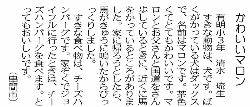 3年生の清水琉生くんの作文が宮崎日日新聞の「窓」に掲載されました。