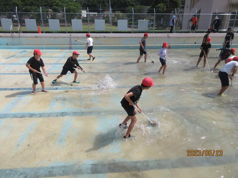 5月23日(火)、子どもたちと職員みんなでプール掃除を行いました。