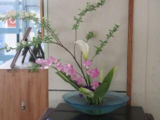今回の花には、ピンクのスイートピーが入っています。スイートピーといえば、松本隆さん作曲の「赤いスイートピー」が有名ですが、松田聖子さんの歌で流行した時には、まだ赤いスイートピーは開発されておらず、この世には存在しなかったとか。