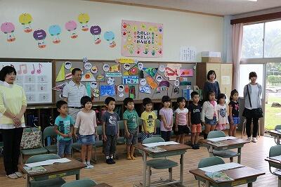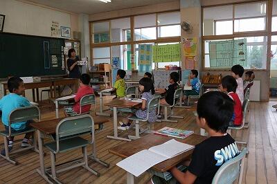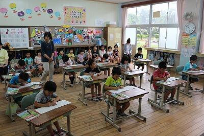 1年生の教室にむつみ保育園の年長さんが参観にきました。