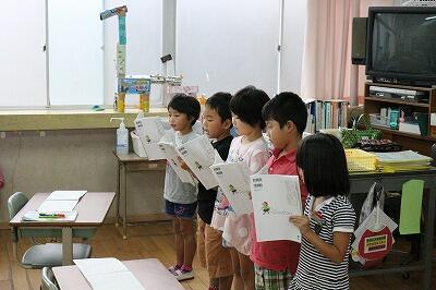 1年生は毎朝、朝の会で歌っている月の歌を聞かせてくれました。