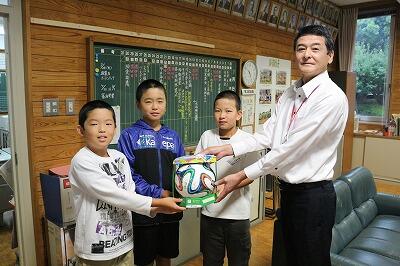 郵便局からサッカーW杯のレプリカボールを寄贈していただきました。