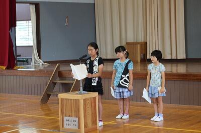 1学期に頑張ったことや反省を1年・3年・5年の代表児童が発表しました。