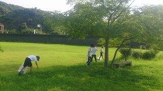 有明小学校卒の中学生、高校生も一緒に活動をして汗を流しました。
